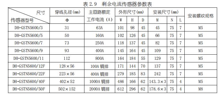 DH-GSTN5600 系列探測器型號(hào)與傳感器的參數(shù)關(guān)系表