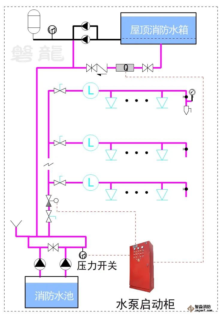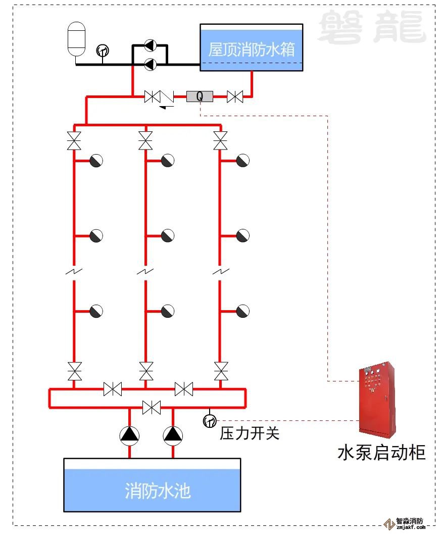 對(duì)于這類系統(tǒng),消防水泵出水干管上應(yīng)設(shè)置壓力開關(guān),高位消防水箱出水管上應(yīng)設(shè)置流量開關(guān),存在問題及解決措施: