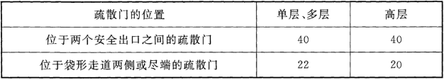 表3 直通疏散走道的房間疏散門(mén)至最近安全出口的最大直線(xiàn)距離(m)