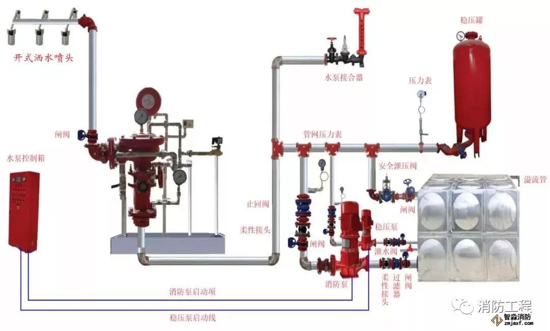開式系統(tǒng)包括雨淋系統(tǒng)、水幕系統(tǒng)。