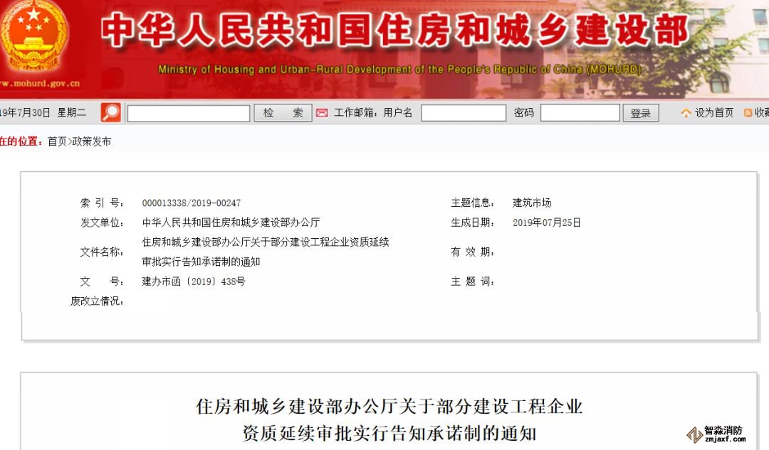 關于部分建設工程企業(yè)資質(zhì)延續(xù)審批實行告知承諾制的通知