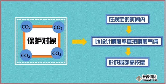 局部應(yīng)用滅火系統(tǒng)指在規(guī)定的時間內(nèi)向保護(hù)對象以設(shè)計(jì)噴射率直接噴射氣體,在保護(hù)對象周圍形成局部高濃度,并持續(xù)一定時間的滅火系統(tǒng)。