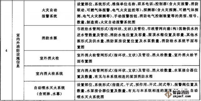 (6)消防設施一覽表,包括消防設施的類型、數(shù)量、狀態(tài)等內(nèi)容;