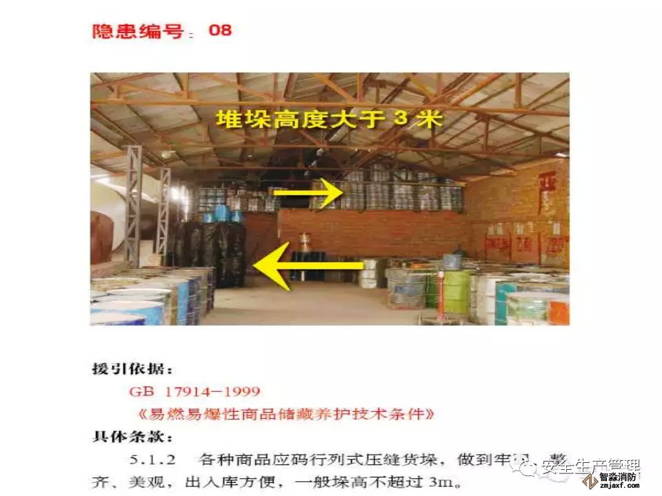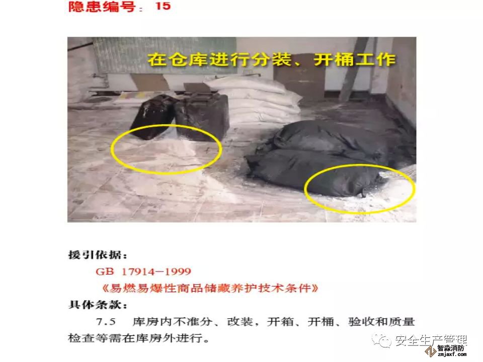 企業(yè)現(xiàn)場(chǎng)管理極其混亂,槽車運(yùn)輸苯乙烯到廠后自行分裝到塑料大桶(1 噸/桶),在沒(méi)有控溫措施的甲類倉(cāng)庫(kù)超量堆垛存放,使用塑料大桶盛裝苯乙烯在包裝物材質(zhì)、容量、儲(chǔ)存條件等均嚴(yán)重違反《工業(yè)用苯乙烯》(GB/T3915-2011)標(biāo)準(zhǔn)規(guī)定。生產(chǎn)車間內(nèi)大量存放原料及產(chǎn)品,倉(cāng)庫(kù)超量?jī)?chǔ)存問(wèn)題突出。 -