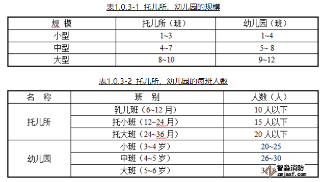八、托兒所、幼兒園的規(guī)模應(yīng)符合表1.0.3-1的規(guī)定,托兒所、幼兒園的每班人數(shù)宜符合表1.0.3-2的規(guī)定。(1.0.3)