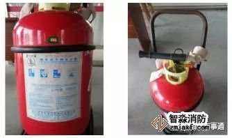 ?、僬_說明滅火器類型(看標示,推車式ABC干粉滅火器,滅A類固體B類液體C類氣體和電類火災(zāi))