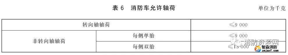根據(jù)《消防車(chē)第1部分:通用技術(shù)條件》(GB7956.1-2014)5.1.5.1要求,消防車(chē)軸荷應(yīng)符合表6的規(guī)定: