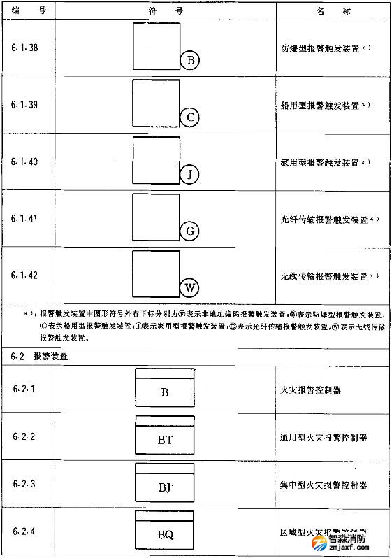 2.3 獨立圖形符號表示特定火災報警設備, 由基本符號與輔助符號或基本符號與附加文字符號相結(jié)合派生而得。