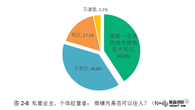今年,廣東消防針對我省私營業(yè)主和個體經營者展開調查的數(shù)據(jù)顯示,有79.6%的受訪者對于“商鋪內是否可以住人”這一消防知識有一定正確認知:38.8%的受訪者明確表示商鋪內不可以住人,約40.8%的受訪者表示采取一定消防技術措施后才可以住人,但仍有17.1%的受訪者存在錯誤觀念,認為商鋪內可以直接居住。
