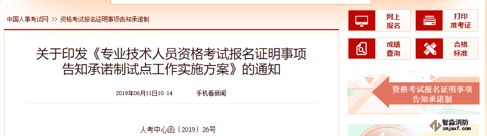 5月31日,人力資源社會保障部印發(fā)《人力資源社會保障系統(tǒng)開展證明事項(xiàng)告知承諾制試點(diǎn)工作實(shí)施方案》(以下簡稱方案)的通知,通知明確:一消、一建、一造、注安等12項(xiàng)專業(yè)技術(shù)人員資格考試報(bào)名時不再提供學(xué)歷、從事相關(guān)工作年限證明,實(shí)行告知承諾制。