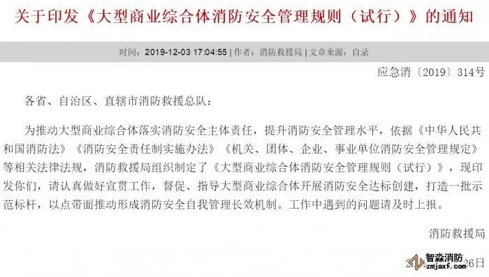 12月3日,應(yīng)急管理部消防救援局印發(fā)《大型商業(yè)綜合體消防安全管理規(guī)則(試行)》的通知。第十二條明確:消防安全管理人對消防安全責(zé)任人負(fù)責(zé),應(yīng)當(dāng)具備與其職責(zé)相適應(yīng)的消防安全知識和管理能力,取得注冊消防工程師執(zhí)業(yè)資格或者工程類中級以上專業(yè)技術(shù)職稱。