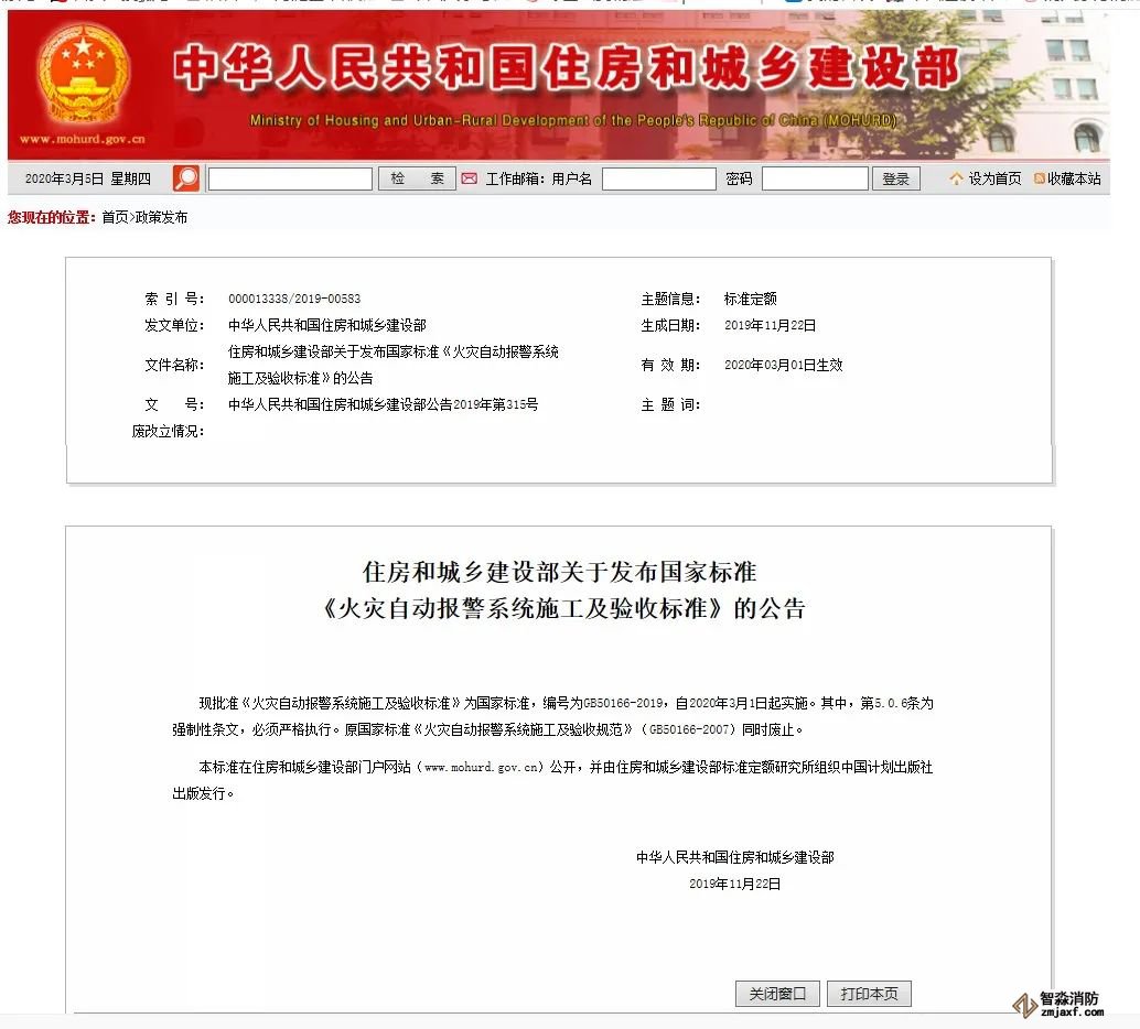 近日,住房和城鄉(xiāng)建設部發(fā)布公告,批準《火災自動報警系統(tǒng)施工及驗收標準》為國家標準,編號為GB50166-2019,自2020年3月1日起實施。原國家標準《火災自動報警系統(tǒng)施工及驗收規(guī)范》(GB50166-2007)同時廢止。