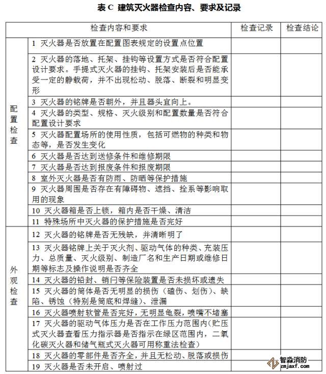 2.1 滅火器的配置、外觀等應(yīng)按附錄C的要求每月進(jìn)行一次檢查。