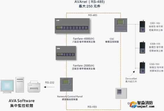 FANFARE-2000四區(qū)型極早期煙霧偵測(cè)主機(jī),可以通過輸入模塊接入火災(zāi)自動(dòng)報(bào)警報(bào)警控制器;也可以全部聯(lián)網(wǎng),并由AVA系統(tǒng)管理軟件對(duì)整個(gè)系統(tǒng)進(jìn)行設(shè)置和監(jiān)控。AVA系統(tǒng)管理軟件安裝在消防控制室的計(jì)算機(jī)上,用戶可以通過它對(duì)整個(gè)探測(cè)系統(tǒng)的所有性能進(jìn)行設(shè)置、調(diào)試和監(jiān)控。