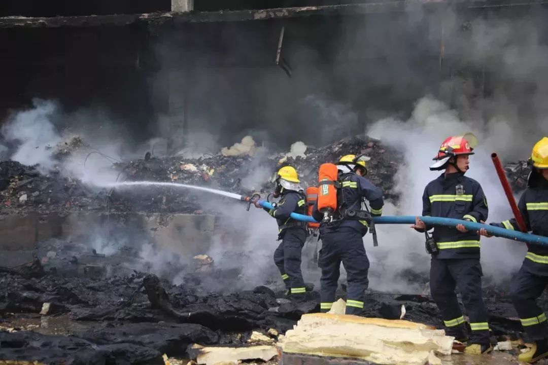 消防員用水槍對(duì)火勢(shì)進(jìn)行打擊,經(jīng)過(guò)2個(gè)多小時(shí)的撲救,大火被成功撲滅。