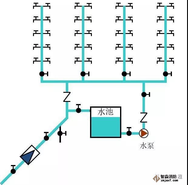 系統(tǒng)簡(jiǎn)單,供水可靠,無(wú)高位水箱,但耗能較多。為了充利用室外管網(wǎng)壓力,節(jié)省電能,當(dāng)水泵與室外管網(wǎng)直接連接時(shí),應(yīng)設(shè)旁通管。