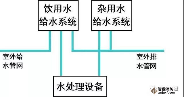 根據(jù)不同用途所需的不同水質(zhì),設(shè)置獨(dú)立的給水系統(tǒng)的建筑供水 。