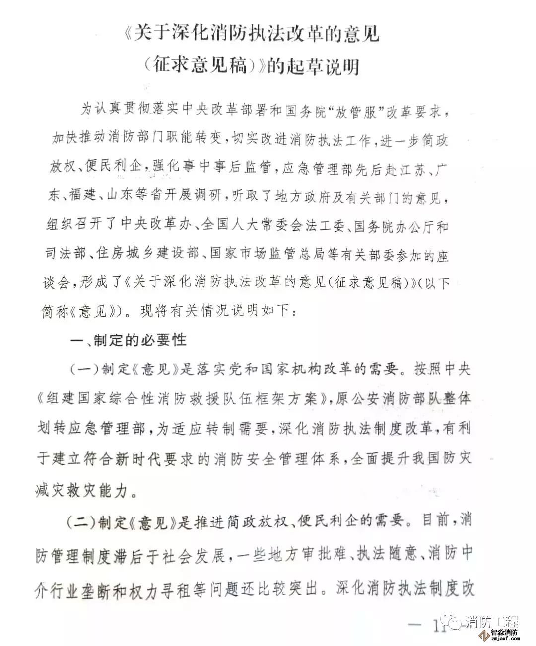 該征求意見稿提出“消防技術(shù)服務(wù)結(jié)論不再作為消防審批的前置條件”。消防審批不是已經(jīng)劃轉(zhuǎn)到住建部門了嗎,怎么應(yīng)急管理部提關(guān)于“消防審批”的事情。原來,參加部位座談會的有“中央改革辦......住房城鄉(xiāng)建設(shè)部......”。推測:可能在這個會上,征求了住房城鄉(xiāng)建設(shè)部關(guān)于工程建設(shè)的消防審批意見,住建部本著改革的要求,研究同意這個提法(做法)——“消防技術(shù)服務(wù)結(jié)論不再作為消防審批的前置條件”。