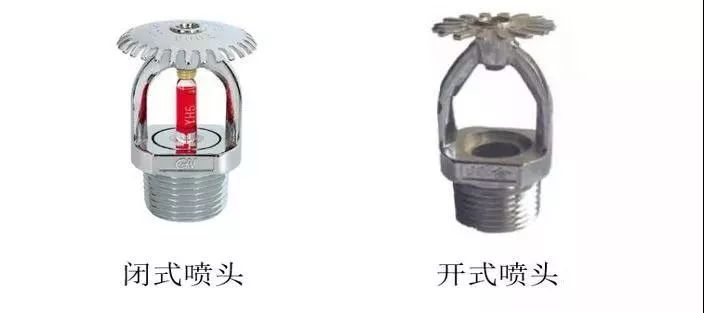 2、 自動噴水滅火系統(tǒng)根據(jù)噴頭的不同可以分為兩類,使用閉式噴頭(注意噴頭中間的紅色玻璃管)就是閉式系統(tǒng),使用開式噴頭的為開式系統(tǒng)。其中閉式系統(tǒng)包括濕式系統(tǒng)、干式系統(tǒng)和預作用系統(tǒng);開式系統(tǒng)包括雨淋系統(tǒng)、水幕系統(tǒng)。