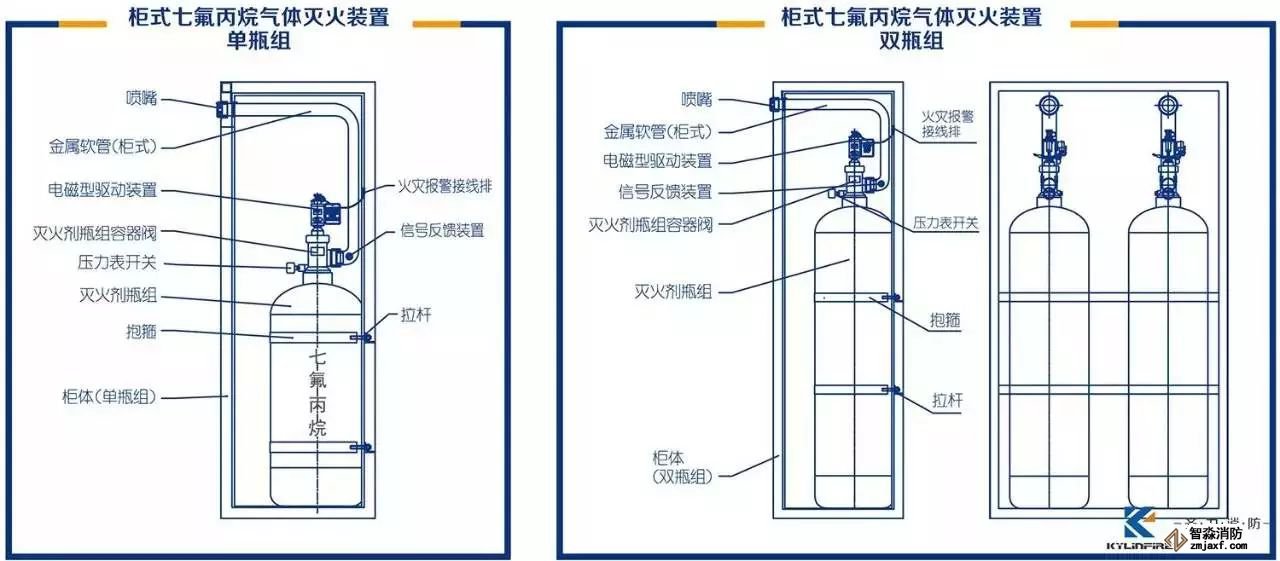 下面小編以本公司生產(chǎn)的柜式七氟丙烷氣體滅火裝置和七氟丙烷滅火設(shè)備為例,和大家一起了解七氟丙烷氣體滅火系統(tǒng)。