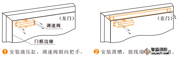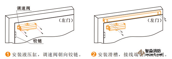 4) 確定好電動閉門器的安裝方向(拉門側(cè)或推門側(cè))安裝閉門器滑槽及液壓缸;