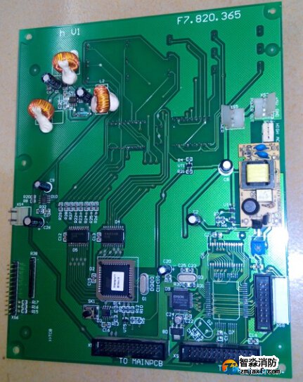海灣GST500主機液晶顯示器無背光,拆下液晶顯示器的發(fā)光管,可以點亮,說明發(fā)光部分沒有問 題,問題出在開關(guān)板上,開關(guān)板上有一升壓模塊(圖中標出紅色的部分),提供液晶顯示器背光所需的 高壓。