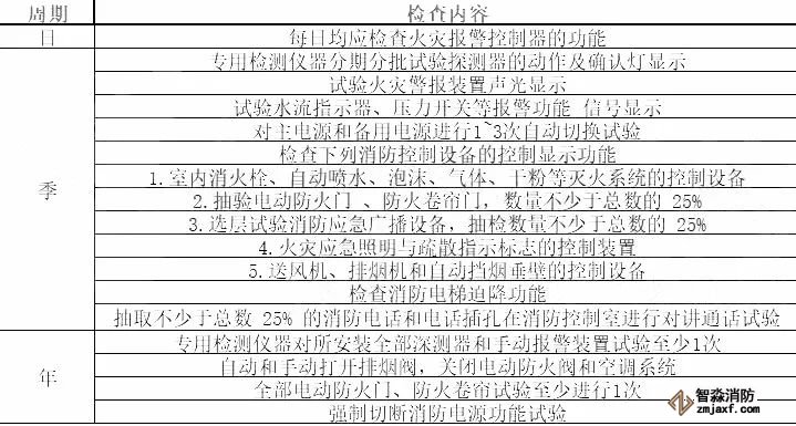 各類消防設施設備系統(tǒng)維護保養(yǎng)周期總結