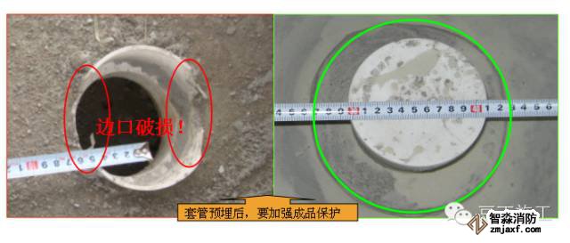 (3)套管預埋后,露出混凝土地面的部分需用細混凝土或水泥砂漿作保護圈,以免造成破損)。