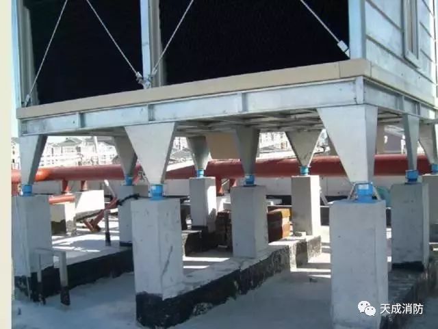 冷卻塔基礎(chǔ)尺寸標(biāo)高、強(qiáng)度均應(yīng)滿足要求基礎(chǔ)高度按管道安裝要求而定?;A(chǔ)經(jīng)過(guò)找平找正后安裝減振裝置,減震裝置與設(shè)備及基礎(chǔ)螺栓固定。