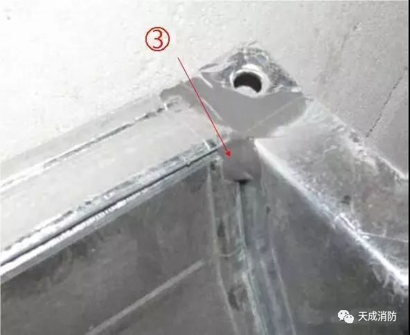 ③ 共板法蘭風(fēng)管四角制作豁口應(yīng)該打膠嚴(yán)密,打膠應(yīng)該抹平整,不出現(xiàn)堆疊現(xiàn)象。