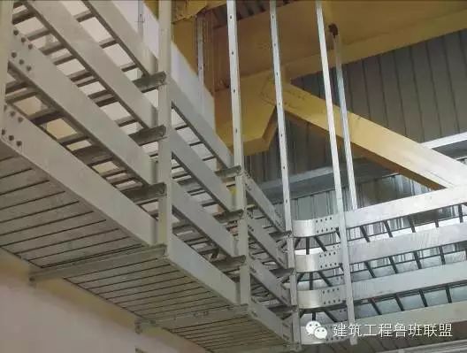 2.2支吊架一般直接焊在預埋件上,無預埋鐵可用膨脹螺栓固定。在鋼結(jié)構(gòu)上可直接焊接固定,安裝好后應對焊接部位補刷油漆。電纜支架應有明顯接地且接地良好。