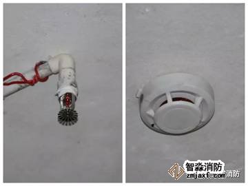 (左:簡(jiǎn)易噴淋右:獨(dú)立感煙探測(cè)器)
