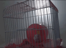 實(shí)驗(yàn)畫面顯示:此時(shí)被困人員聽到獨(dú)立感煙探測(cè)器的報(bào)警聲,準(zhǔn)備通過逃生窗逃生,倉鼠正常存活。)