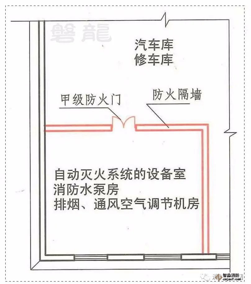 2、非汽車庫自用的設(shè)備用房,不能利用通向汽車庫的防火門作為安全出口,汽車庫也不能利用通向設(shè)備用房的防火門作為安全出口。詳見專題:設(shè)備用房與汽車庫-疏散關(guān)系及應(yīng)用誤區(qū)!