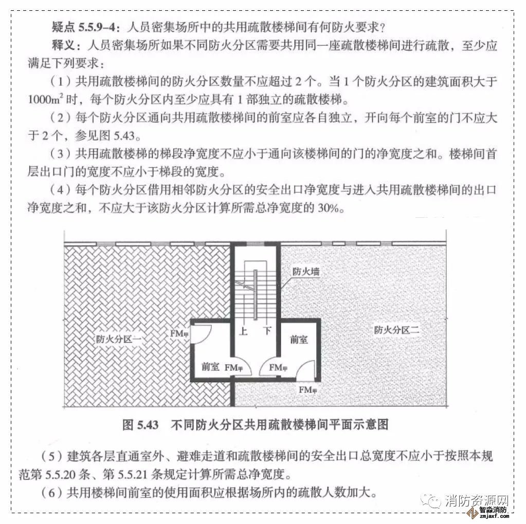 附錄2:“《建筑設(shè)計防火規(guī)范》GB50016-2014(2018年版)實施指南”關(guān)于人員密集場所中的共用疏散樓梯間的防火要求: