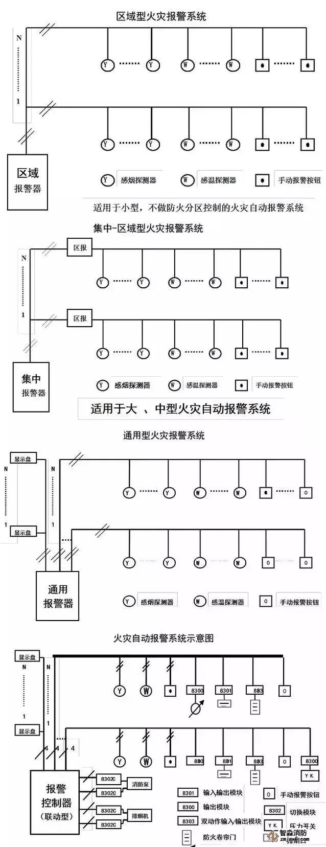 (1)區(qū)域報(bào)警系統(tǒng):由區(qū)域(火災(zāi))報(bào)警控制器和火災(zāi)探測(cè)器等組成的功能簡(jiǎn)單的系統(tǒng)。