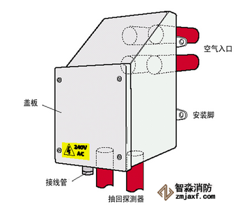 § 空氣加熱器需要使用AC電源,建議對其工作狀態(tài)進(jìn)行連續(xù)監(jiān)控。為此,要求廠家配備溫度調(diào)節(jié)裝置,并安裝在氣流進(jìn)入GST空氣采樣式感煙火災(zāi)探測報警器的位置。此開關(guān)的輸出可用于故障報警。