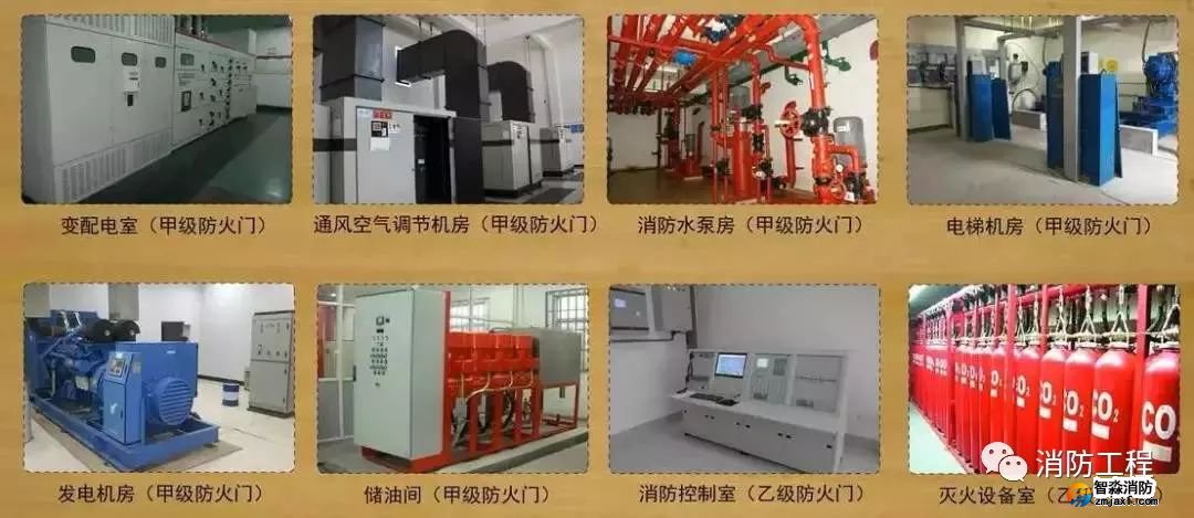 重要設(shè)備間需要設(shè)置防火門,以保護(hù)設(shè)備安全,常用的設(shè)備間有:變配電室(甲級)、通風(fēng)空氣調(diào)節(jié)機(jī)房(甲級)、消防水泵房(甲級)、電梯機(jī)房(甲級)、發(fā)電機(jī)房(甲級)、儲油間(甲級)、消防控制室(乙級)、滅火設(shè)備室(乙級)。