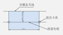如果感溫電纜敷設(shè)在走廊,過(guò)道等長(zhǎng)條形狀建筑物時(shí),宜用吊線以直線方式在中間敷設(shè)。吊線應(yīng)有拉緊裝置,每隔2m用固定卡具把電纜固定在吊線上。