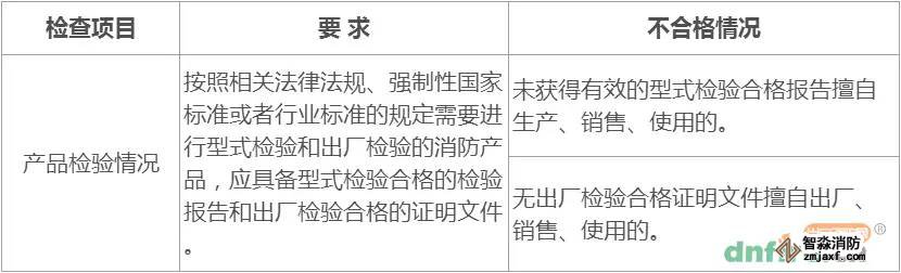 消防產(chǎn)品質(zhì)量應(yīng)當(dāng)按照相關(guān)法律法規(guī)、強(qiáng)制性國(guó)家標(biāo)準(zhǔn)或者行業(yè)標(biāo)準(zhǔn)的規(guī)定,經(jīng)型式檢驗(yàn)和出廠檢驗(yàn)合格。產(chǎn)品檢驗(yàn)情況檢查項(xiàng)目、要求及不合格情況見下表。