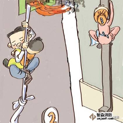9、千萬不要盲目跳樓,可利用疏散樓梯、陽臺,落水管等逃生自救。也可用繩子把床單、被套撕成條狀連成繩索,緊栓在窗框、暖氣管、鐵欄桿等固定物上,用毛巾、布條等保護手心,順繩滑下,或下到未著火的樓層脫離險境。
