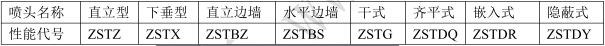 3)噴頭規(guī)格型號(hào)的標(biāo)記由類型特征代號(hào)、性能代號(hào)、公稱口徑和公稱動(dòng)作溫度等部分組成。