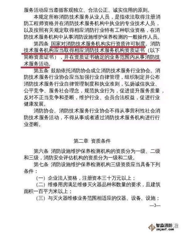 “ 取消消防設(shè)施維護(hù)保養(yǎng)檢測、消防安全評估機(jī)構(gòu)資質(zhì)許可制度,企業(yè)辦理營業(yè)執(zhí)照后即可開展經(jīng)營活動。”這是征求意見稿非常重要的一條。